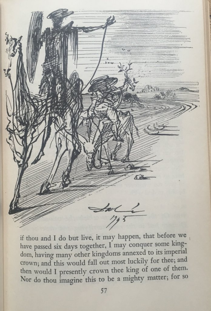 Abaixo ilustrações da edição de 1946 “Don Quixote” de Cervantes, ilustrações de Salvador Dalí. New York: Modern Library. Uma combinação de desenhos e aquarelas: